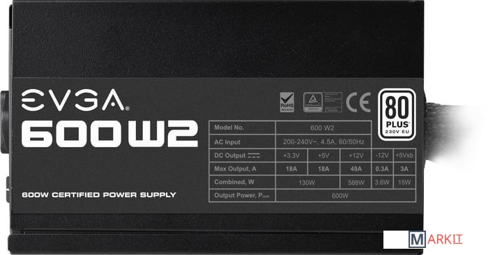 Markit » Блоки питания » Блок питания EVGA 600 W2 100-W2-0600-K2