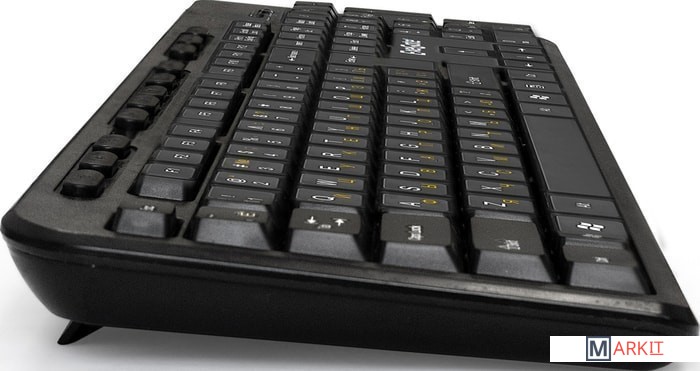 Многофункциональная мультимедийная проводная клавиатура. Классическая раскладка. Полноразмерные клавиши Enter и Backspace. Регулируемый угол наклона. Для работы не требуются драйвера.