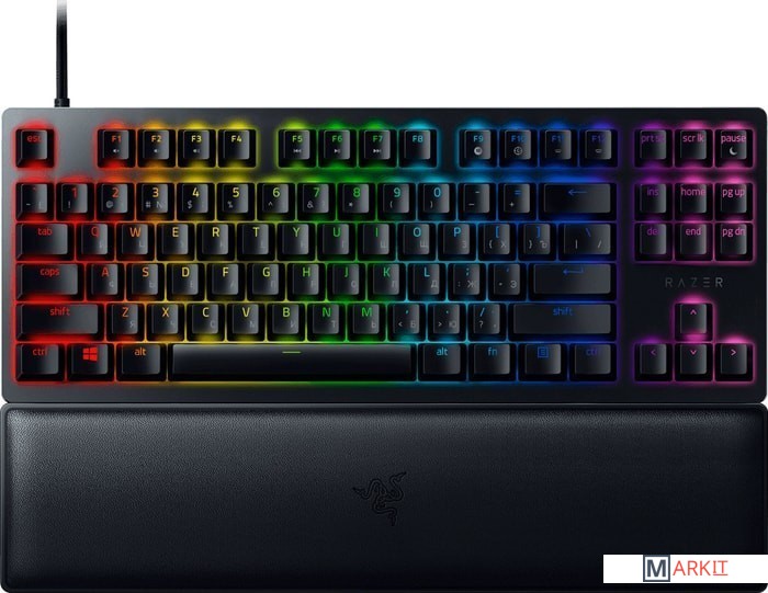 Клавиатура с непревзойденной скоростью отклика еще никогда не была такой стройной. Встречайте Razer Huntsman V2 TKL — оптическую игровую клавиатуру без цифрового блока (Tenkeyless), со сниженным шумом, практически нулевой задержкой входного сигнала и оснащенную различными высококлассными функциями. Компактный форм-фактор этой клавиатуры сочетается с ее полноразмерной функциональностью.Быстрее, легче и надежнее традиционных механических переключателей, и поддерживают реальную частоту опроса до 8000 Гц для более низкой задержки ввода. Доступны в двух вариантах — Линейные (Red) и Щелкающие (Purple).КЕЙКАПЫ ИЗ PBT ДВОЙНОГО ЛИТЬЯЭти колпачки для клавиш прочнее и долговечнее, чем из АБС-пластика. Их поверхность не сотрется до блеска, а обозначения на клавишах будут вечно новыми благодаря двухкомпонентному процессу литья.ЗВУКОПОГЛОЩАЮЩАЯ ПЕНАВнутри корпуса клавиатуры Razer Huntsman V2 TKL имеется слой особой пены, чтобы поглощать любой лязгающий шум, который может возникать при сильном нажатии на клавиши.СЪЕМНЫЙ КАБЕЛЬ USB-CПереноси, подключай и играй на клавиатуре с комфортом на любых LAN-соревнованиях и турнирах. Защелка кабеля гарантирует, что он будет надежно подключен во время игры.ГИБРИДНАЯ ВСТРОЕННАЯ ПАМЯТЬ И ОБЛАЧНОЕ ХРАНИЛИЩЕБудь готов к игре в любой ситуации, благодаря возможности сохранить и активировать до 5 профилей во встроенной памяти, одновременно создавая библиотеку макросов и настроек для использования с облачным хранилищем.