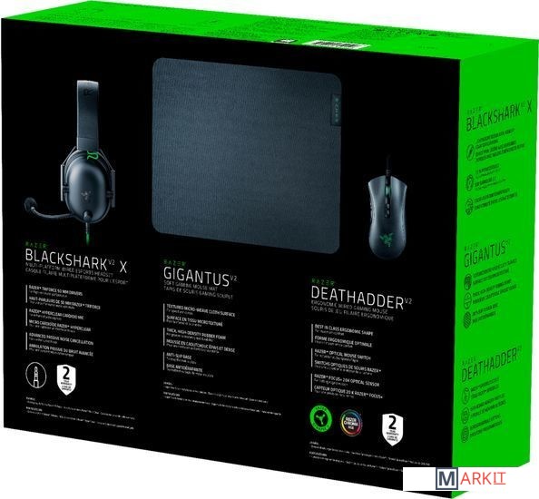 Markit » Комплекты клавиатура и мышь » Мышь с ковриком + наушники Razer DeathAdder V2 - BlackShark V2 X - Gigantus V2 M RZ85-03240100-B3U1